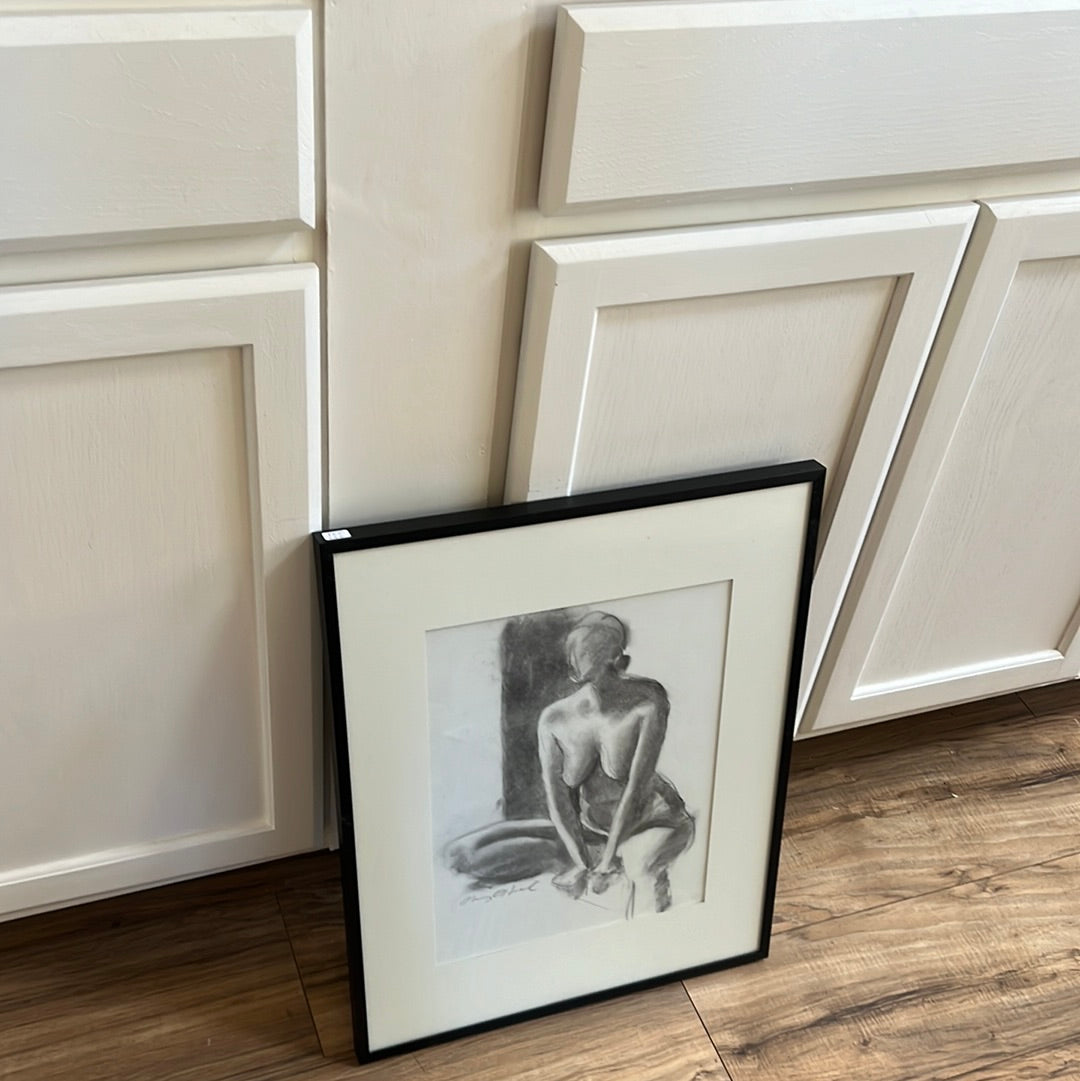 Charcoal drawing in black frame
